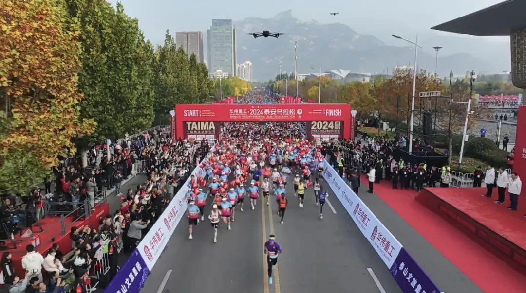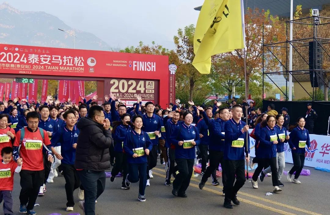 11月3日上午,2024泰安馬拉松暨好運山東·馬拉松城市聯(lián)賽(泰安站)在泰山國際會展中心鳴槍起跑,22000余名跑者相約泰安,一起跑過壯麗山河。泰山文旅集團作為唯一頂級贊助商,集團機關與各子公司組成100人的文旅方陣,助力賽事成功舉辦。隨著發(fā)令聲響起,整個城市仿佛被瞬間點燃。選手們蓄勢出發(fā),精神抖擻,斗志昂揚。賽道兩旁,觀眾揮舞著彩旗,為跑者們加油助威。