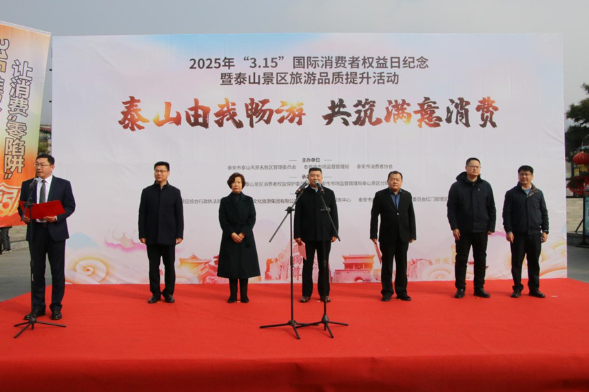 為迎接第43個“3·15”國際消費者權(quán)益日,3月11日,泰山景區(qū)“3·15”國際消費者權(quán)益日紀念暨泰山景區(qū)旅游品質(zhì)提升活動在紅門游客中心廣場舉行,此次活動旨在進一步營造安全放心、公平誠信的消費環(huán)境,助力景區(qū)高質(zhì)量發(fā)展。