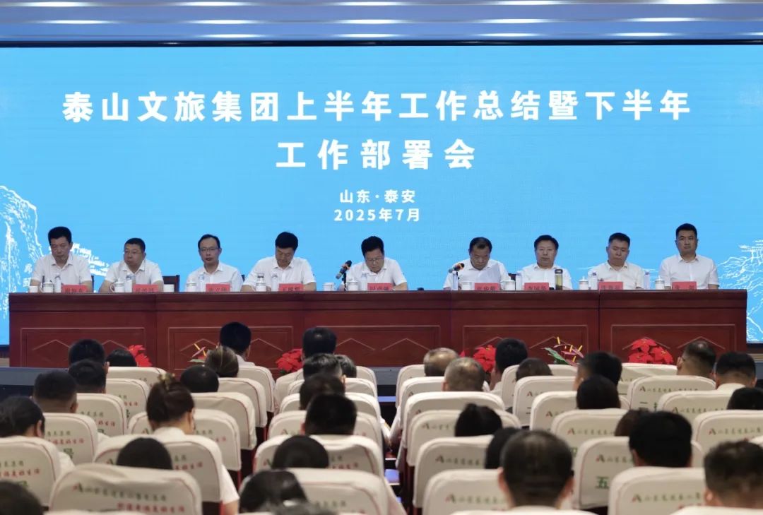 7 月 12 日,泰山文旅集團(tuán)召開(kāi)上半年工作總結(jié)暨下半年工作部署會(huì)。會(huì)議全面總結(jié)集團(tuán) 2025 年上半年各項(xiàng)工作,深入分析當(dāng)前面臨的形勢(shì)和存在的問(wèn)題,安排部署下半年重點(diǎn)任務(wù),動(dòng)員集團(tuán)上下進(jìn)一步統(tǒng)一思想、堅(jiān)定信心、攻堅(jiān)克難,確保圓滿(mǎn)完成全年各項(xiàng)目標(biāo)任務(wù)。泰山景區(qū)黨工委委員,集團(tuán)黨委書(shū)記、董事長(zhǎng)時(shí)貞強(qiáng)出席會(huì)議并講話(huà),集團(tuán)黨委副書(shū)記、總經(jīng)理張俊敏主持會(huì)議。